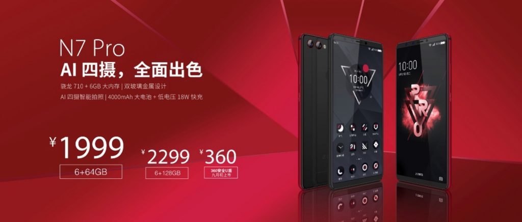 正式推出 N7 Pro 和 N7 Lite 两款新品。其间,N7 Pro 是 360 手机在 2018 年的旗舰机型,其装备 5.99 英寸 18:9 FHD+无刘海全面屏,搭载高通骁龙 710 处理器、6GB 内存、4000mAh 容量电池和高通 QC4+ 快充,并装备 1200 万像素后置 AI 双摄和 1600 万像素前置 AI 双摄。而 360手机 N7 Lite 是一款千元机型,搭载了骁龙 660 AIE 人工智能处理器、4/6GB 内存、4050mAh容量电池,并支撑最新的AI功用。外观